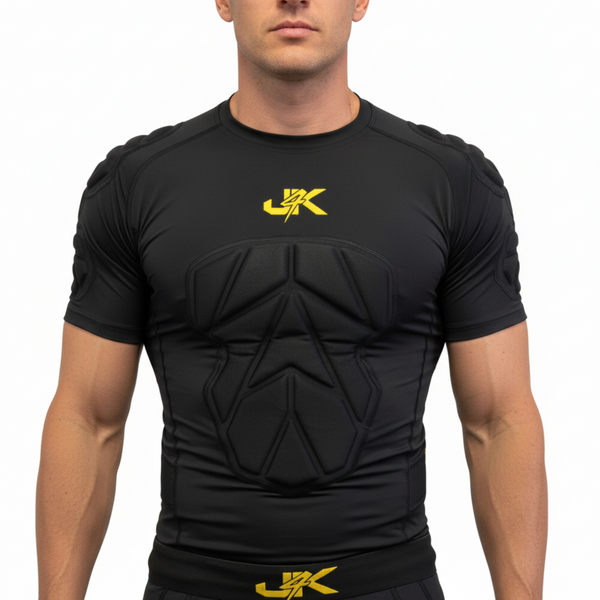 The J4K Padded Compression T-Shirt is an essential layer for goalkeepers seeking enhanced protection, support, and flexibility on the field.